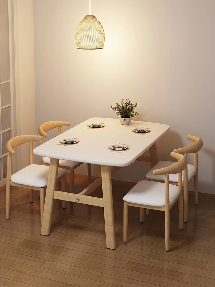 新中式スタイルの長方形ダイニングテーブル&チェアセット - おしゃれで機能的な小型リビングにぴったり!家族や友人とくつろぎながら過ごせる、シンプルで洗練されたデザインのティーテーブル。