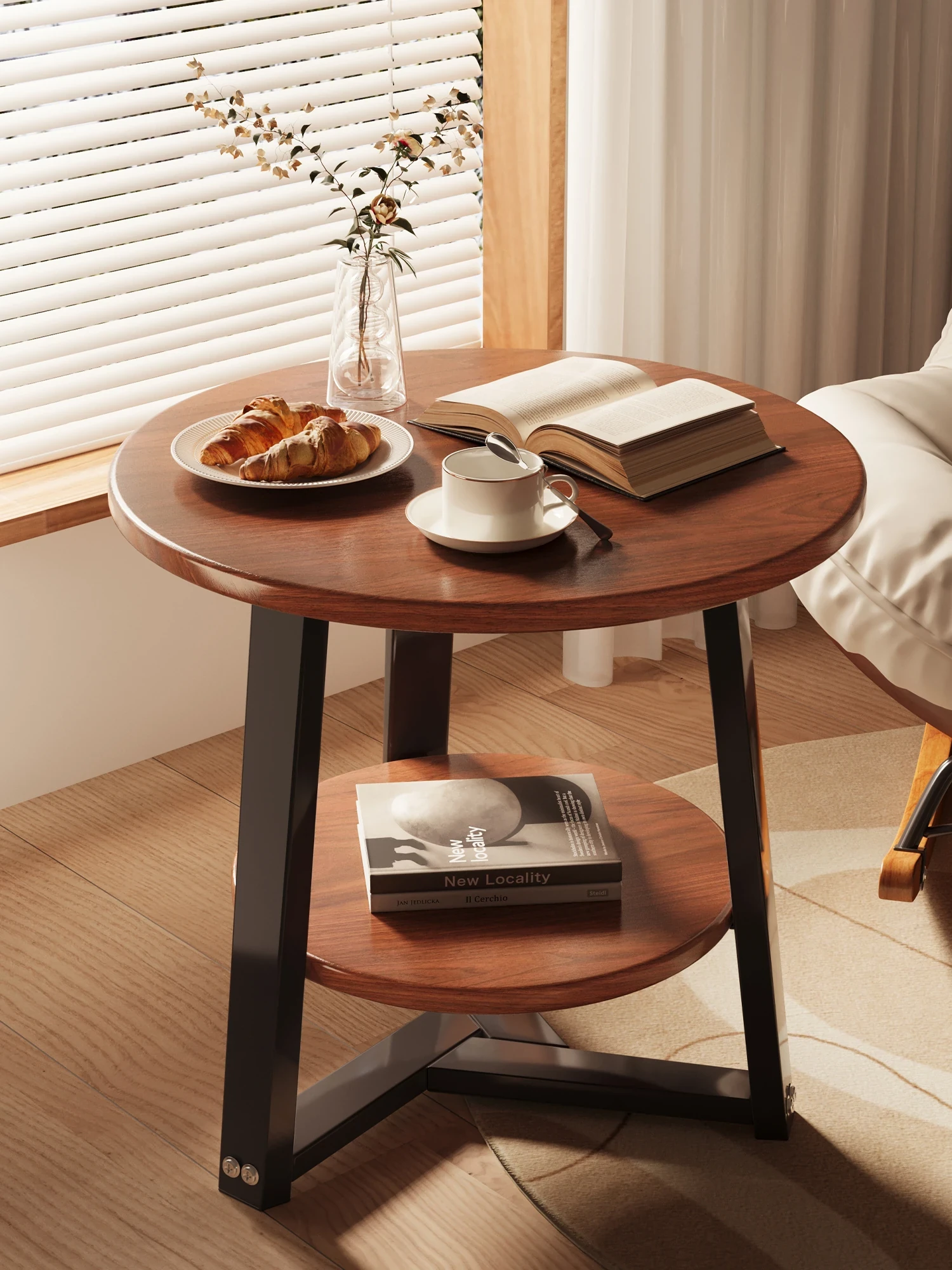 バルコニー用二段式小型テーブル|便利でおしゃれなソファサイドテーブル|リビングや小さなお部屋にぴったり|ヴィンテージ風の円形収納テーブル【多機能】