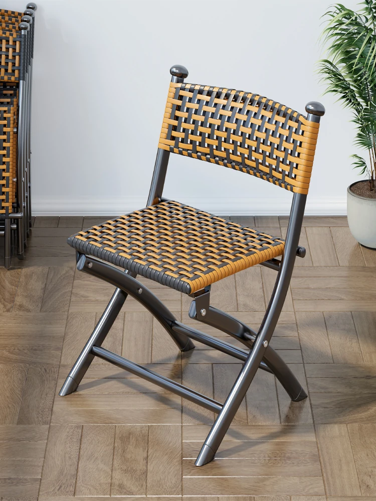 Foldable Rattan Chair for Home – Stylish Single-Seat Dining Chair with Backrest, Lightweight Plastic Rattan Stool for Casual Dining and Outdoor Use, Space-Saving Design