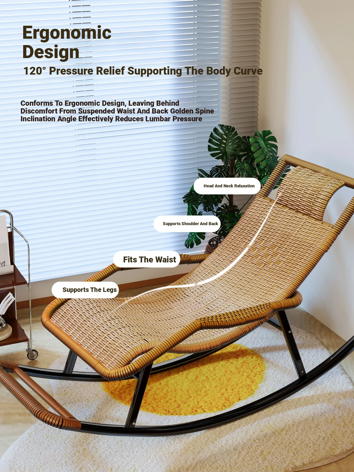 Relaxing Rattan Rocking Chair for Adults - Perfect for Napping in Living Room or Balcony, Ideal Leisure Sofa Lounge Chair, Ultimate Comfort Lazy Chair
