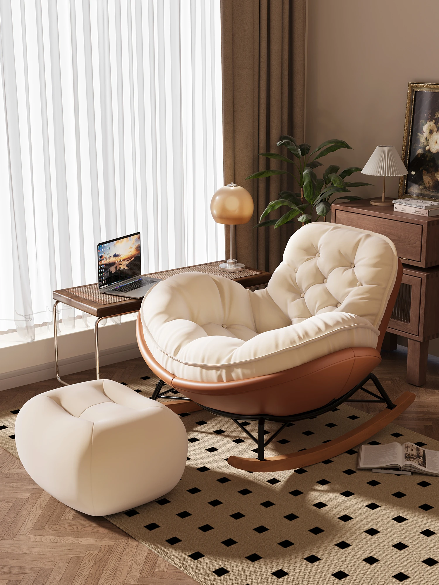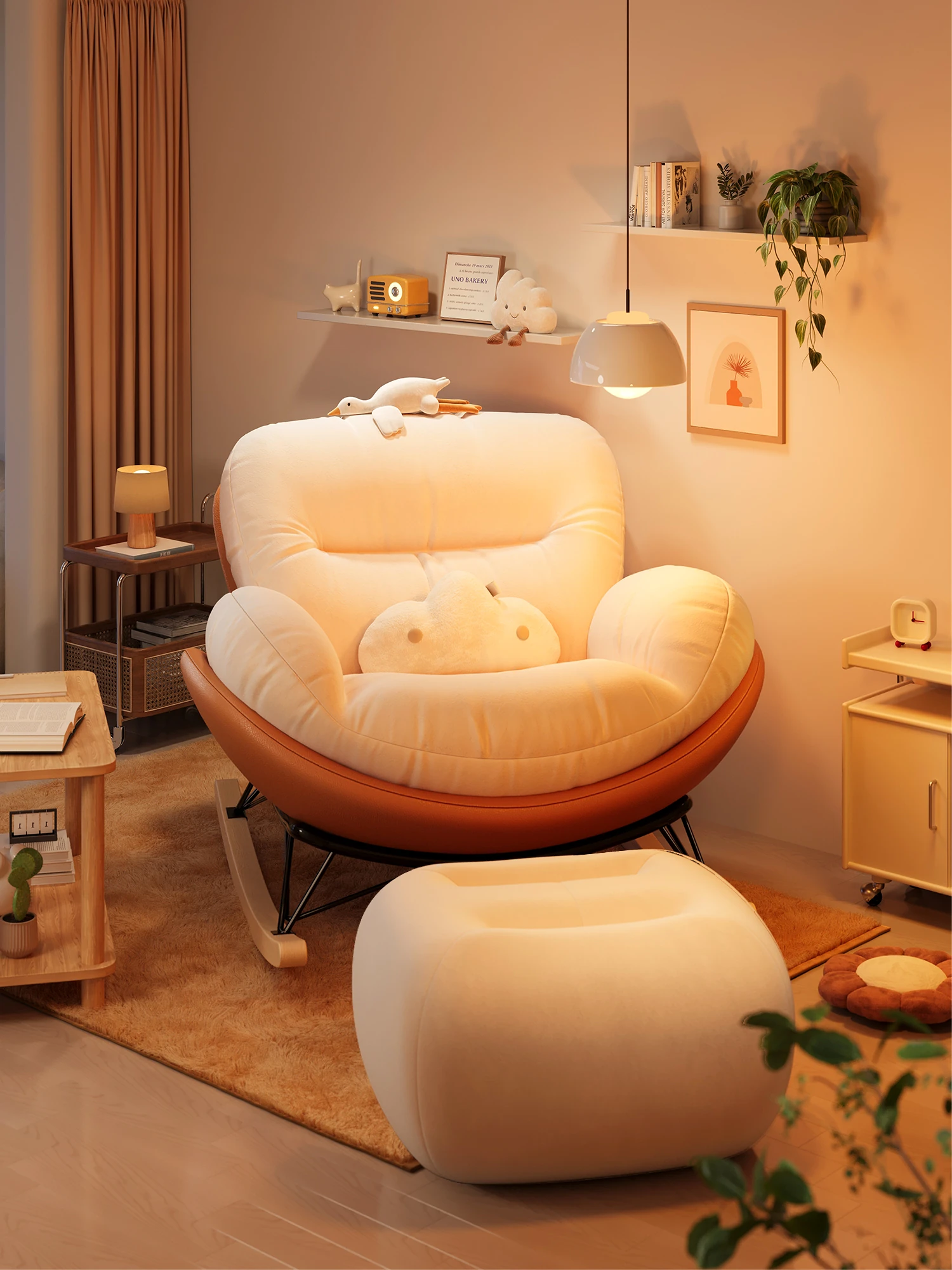 Cozy Rocking Chair for Adults - Reclining Lounge Chair Perfect for Balcony Relaxation, Sleep and Leisure - Stylish Eggshell Single Sofa for Ultimate Comfort