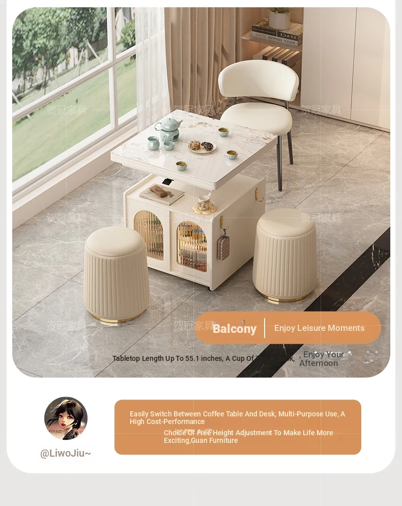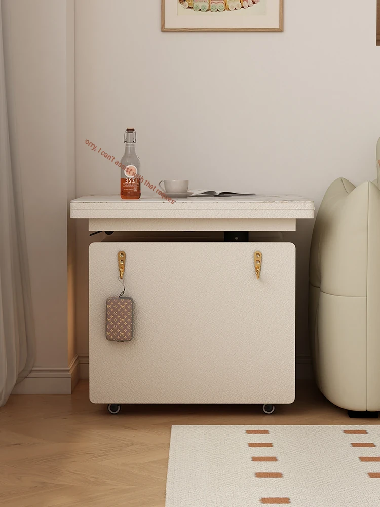 Rock plate telescopic Movable tea table [antibacterial leather White + Sheung Shui tea full automatic]]