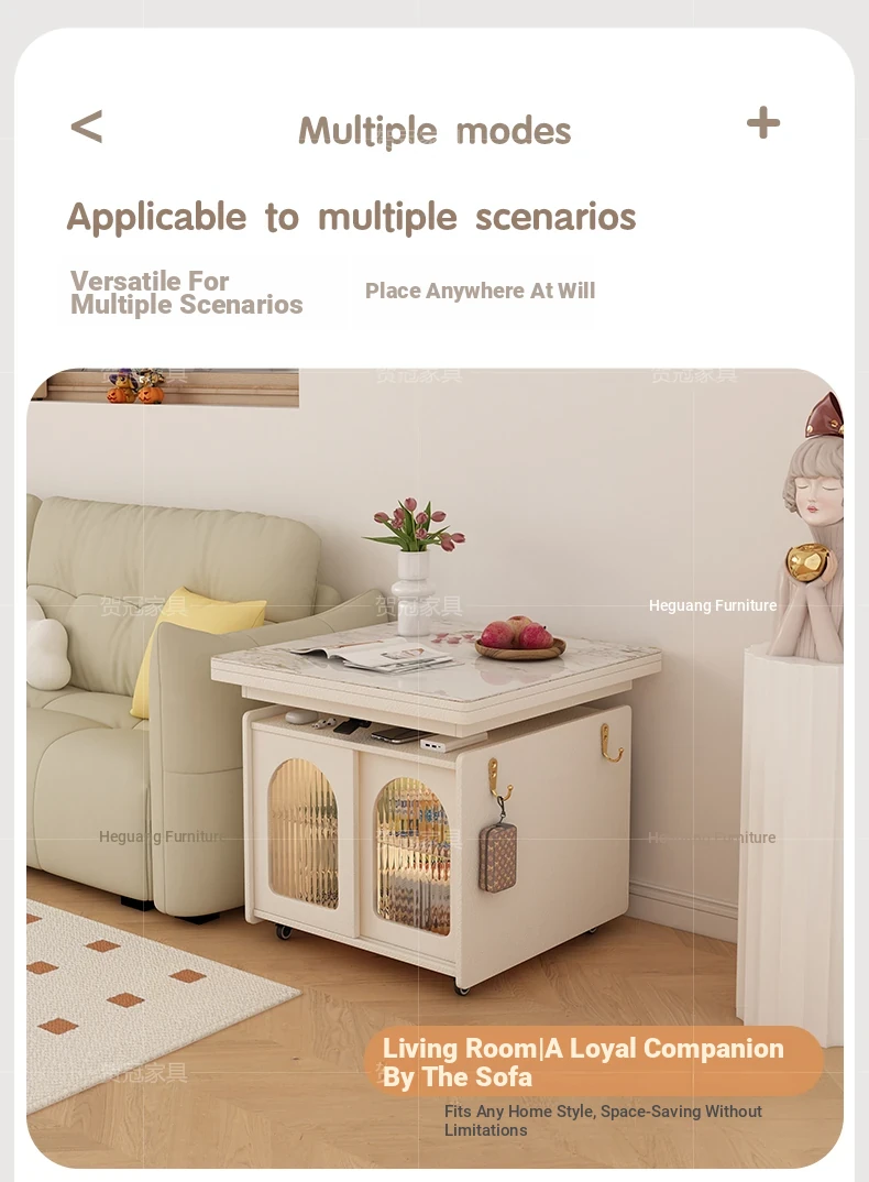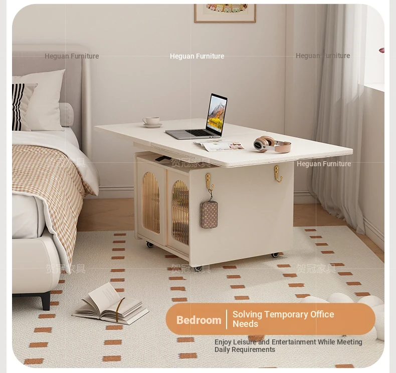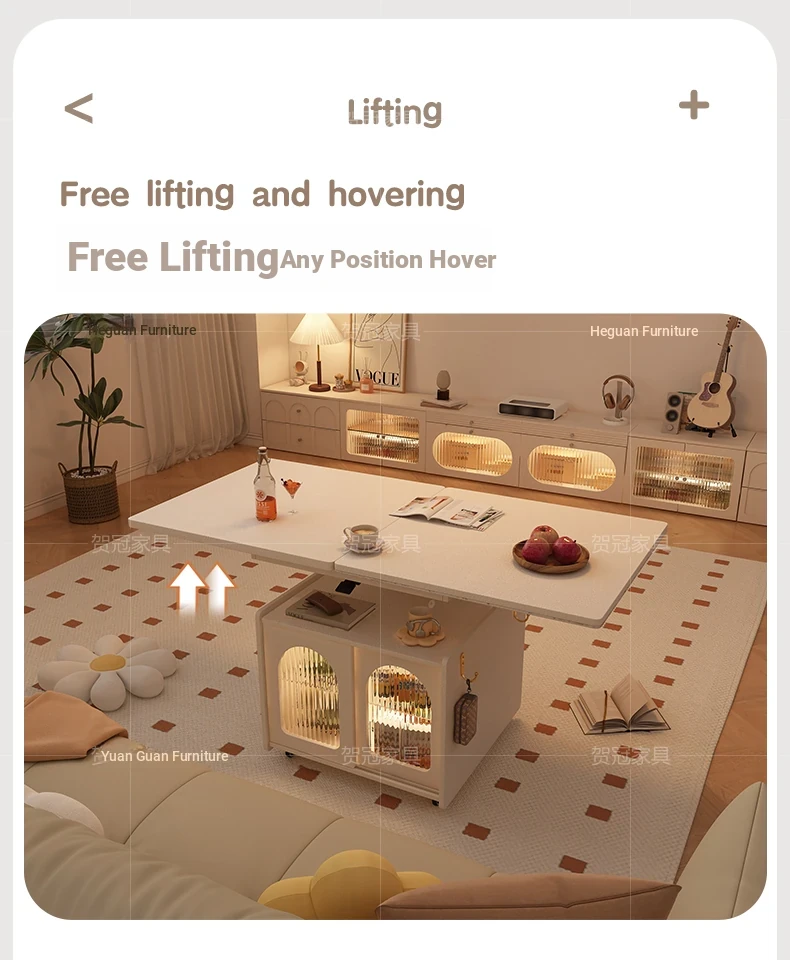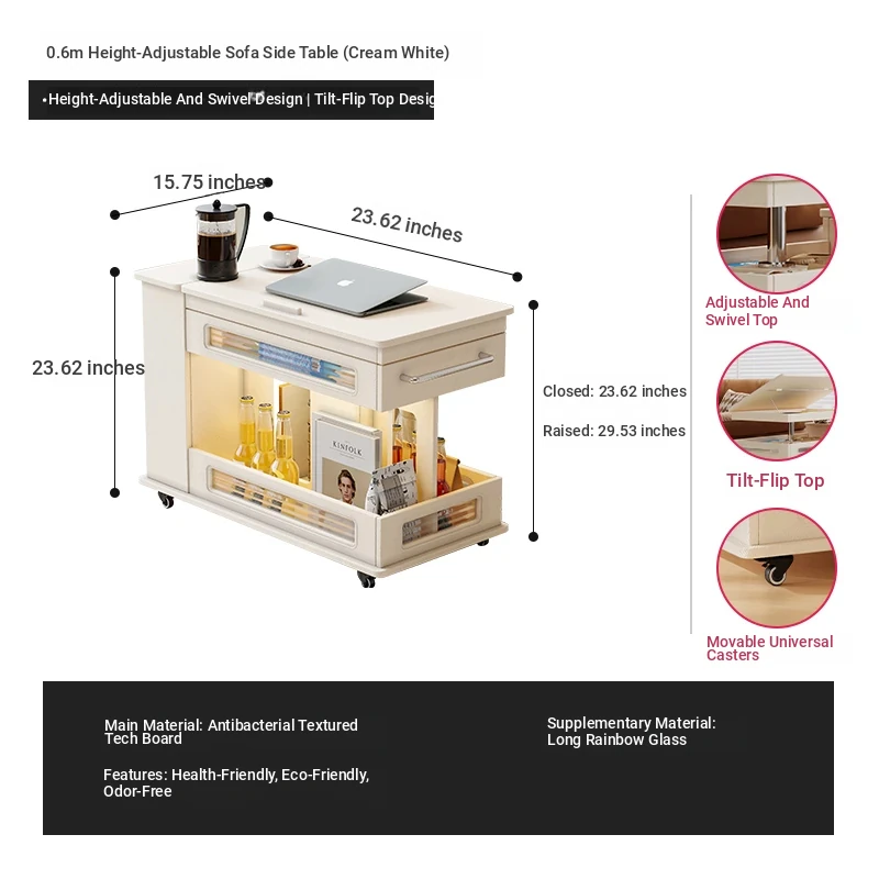 55.12 ins Rotate Adjustable coffee table table [cream]](Skin feeling antibacterial sheet)