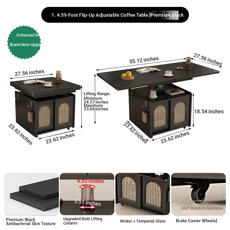 55.12 ins Rotate Adjustable tea table table [Classy Black]](Rotatable Adjustable desktop)
