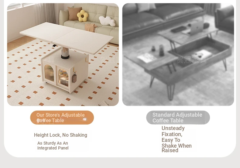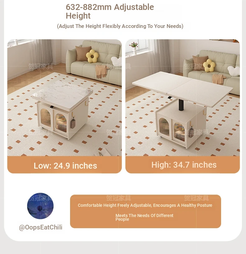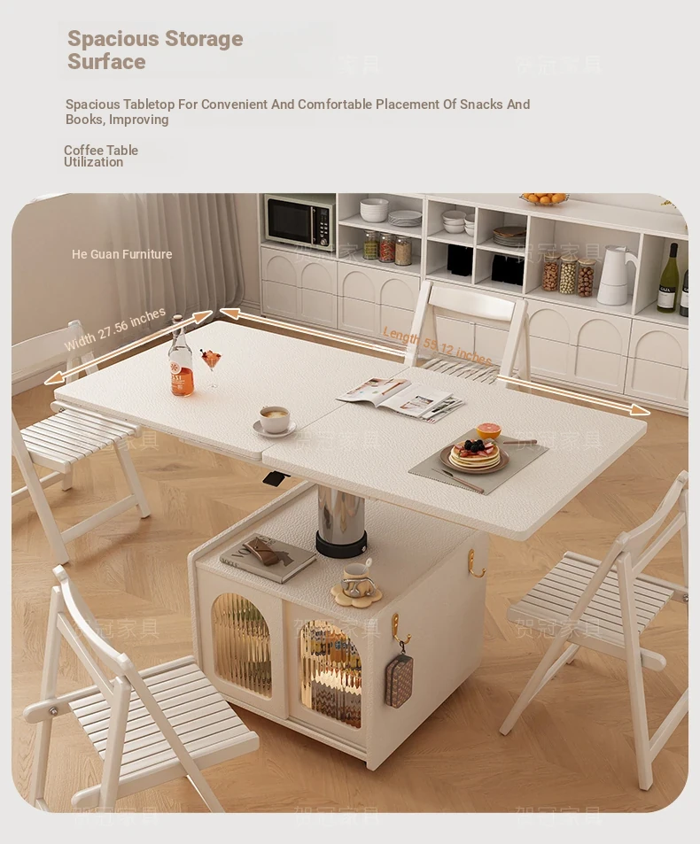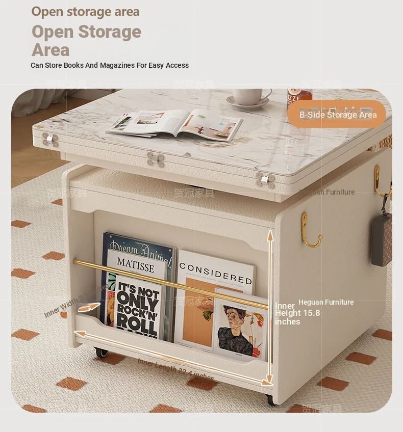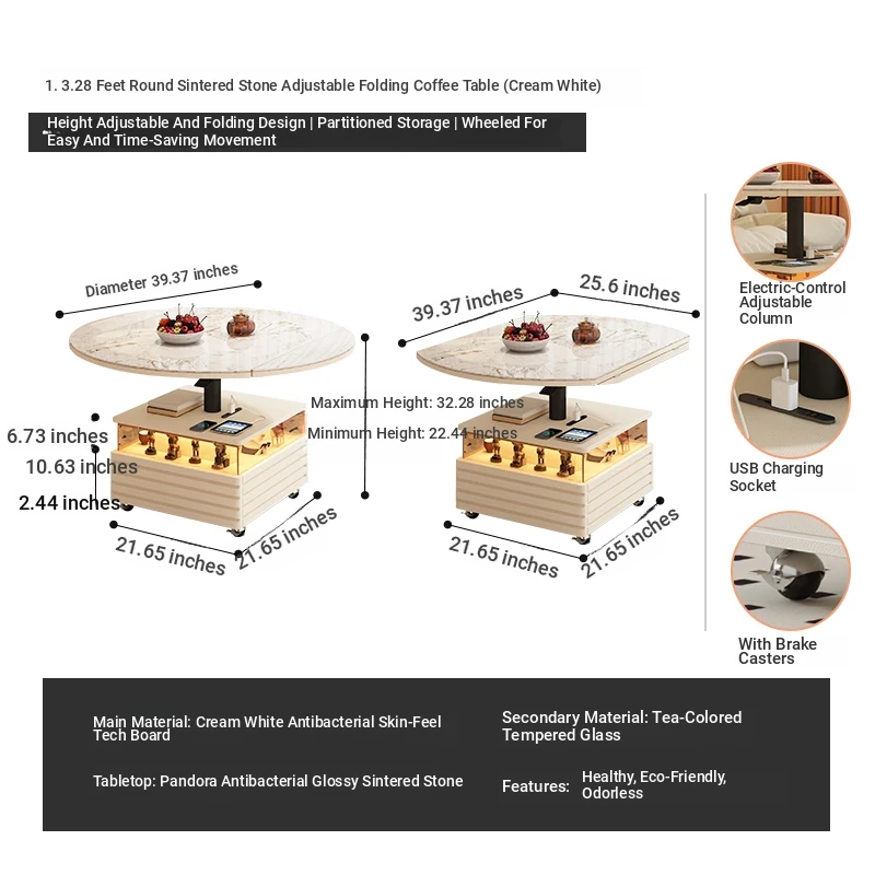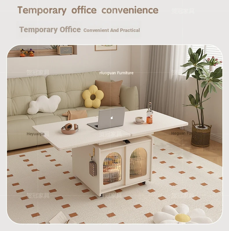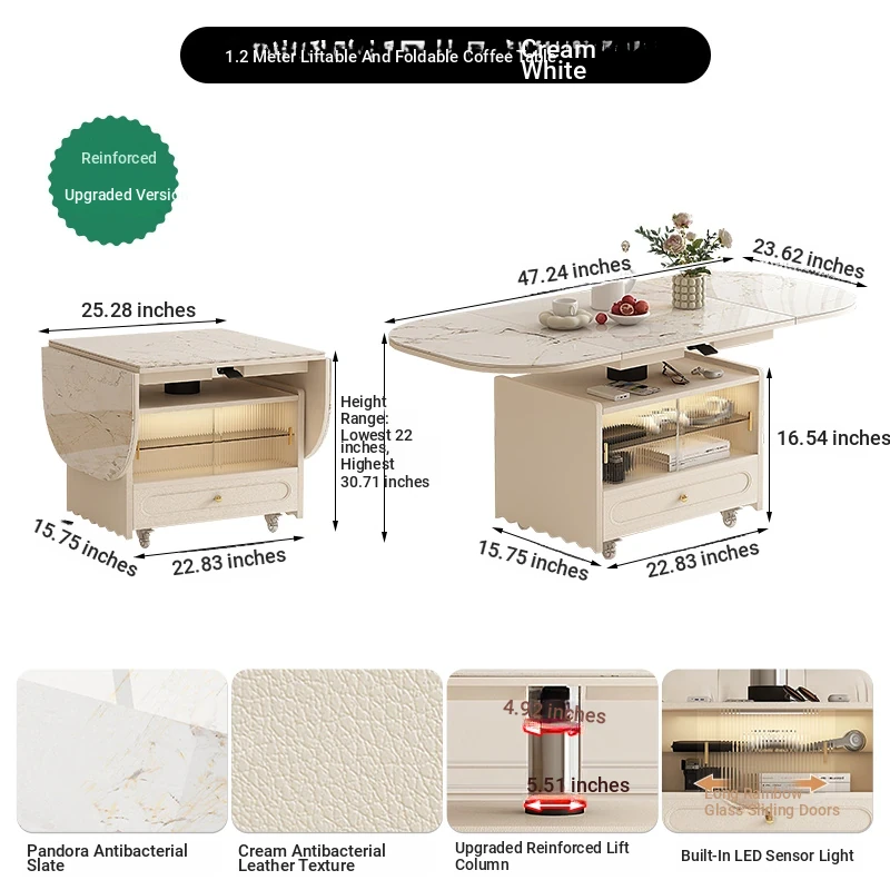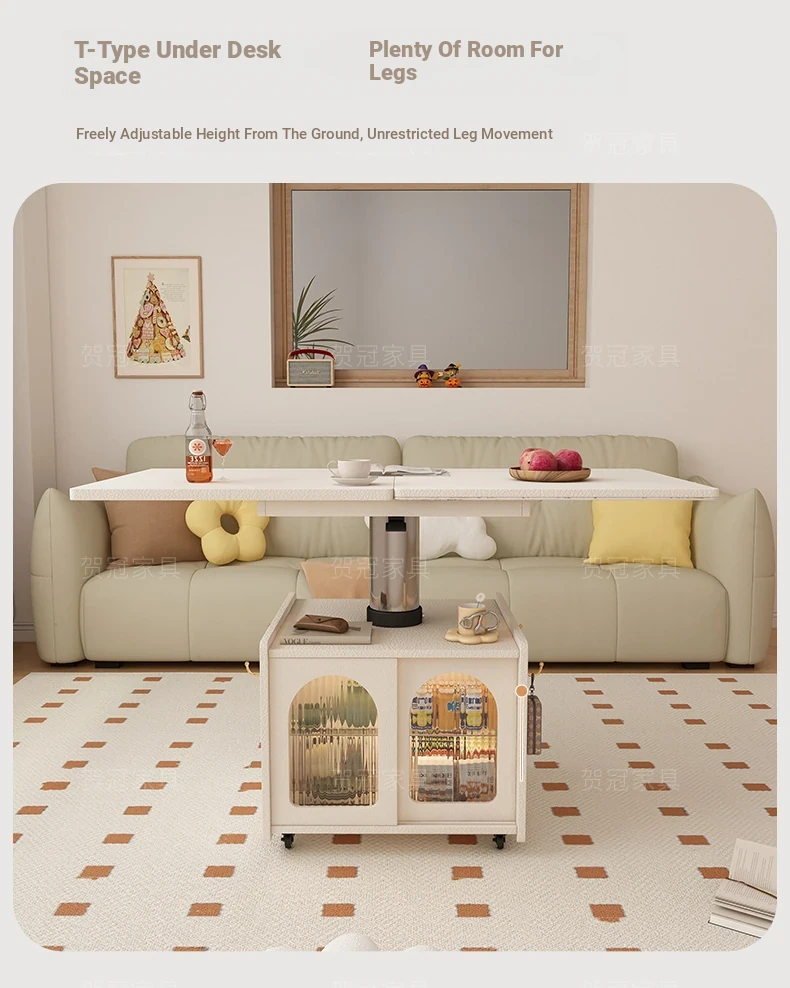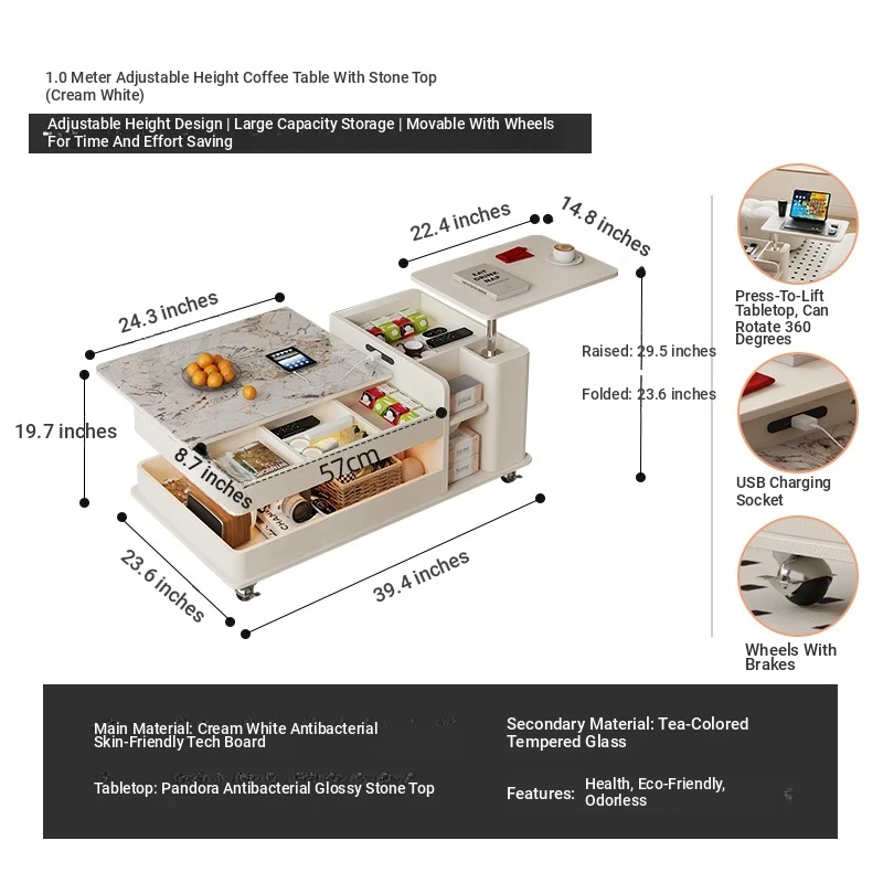 39.37 in Multifunctional Adjustable Square Coffee Table [Cream White]]