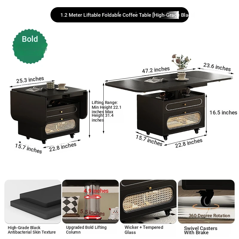 [Retro Elegant Black] 31.50 in Movable Flip Adjustable Side