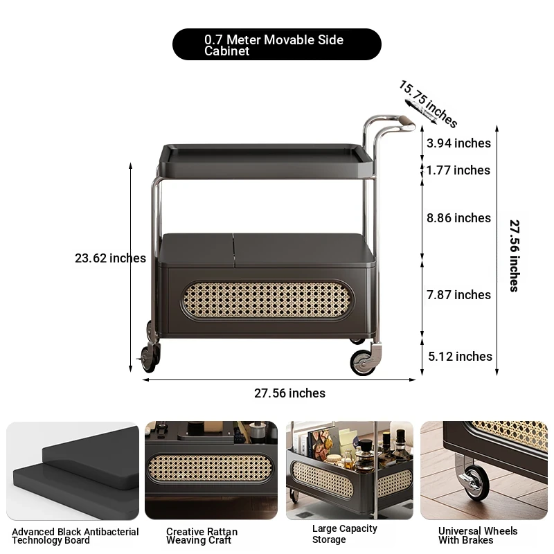 27.56 in rattan trolley side a few [Retro elegant black]]