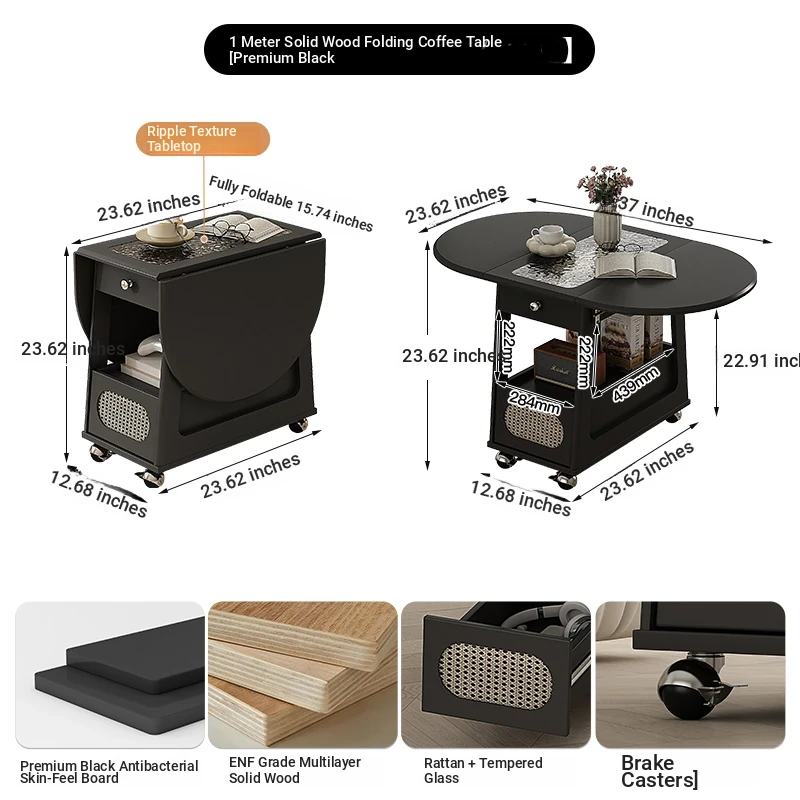 [Retro Elegant Black] 23.62 in Movable Flip Adjustable Side