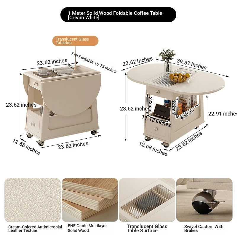[Cream White] 0.6-meter Movable Flip Adjustable Side