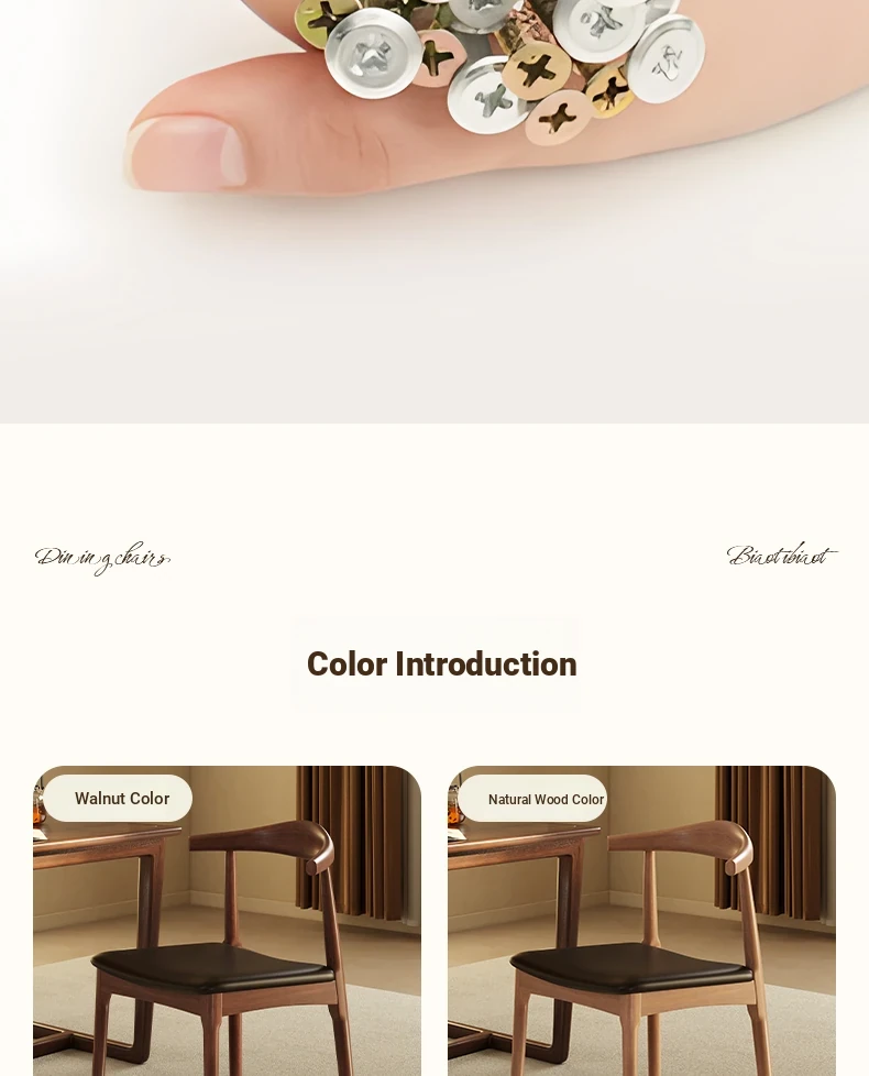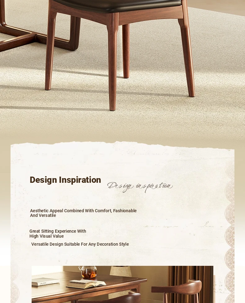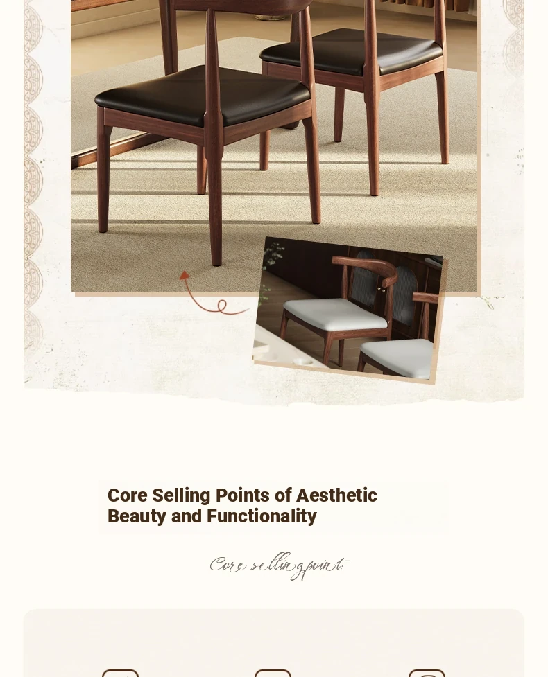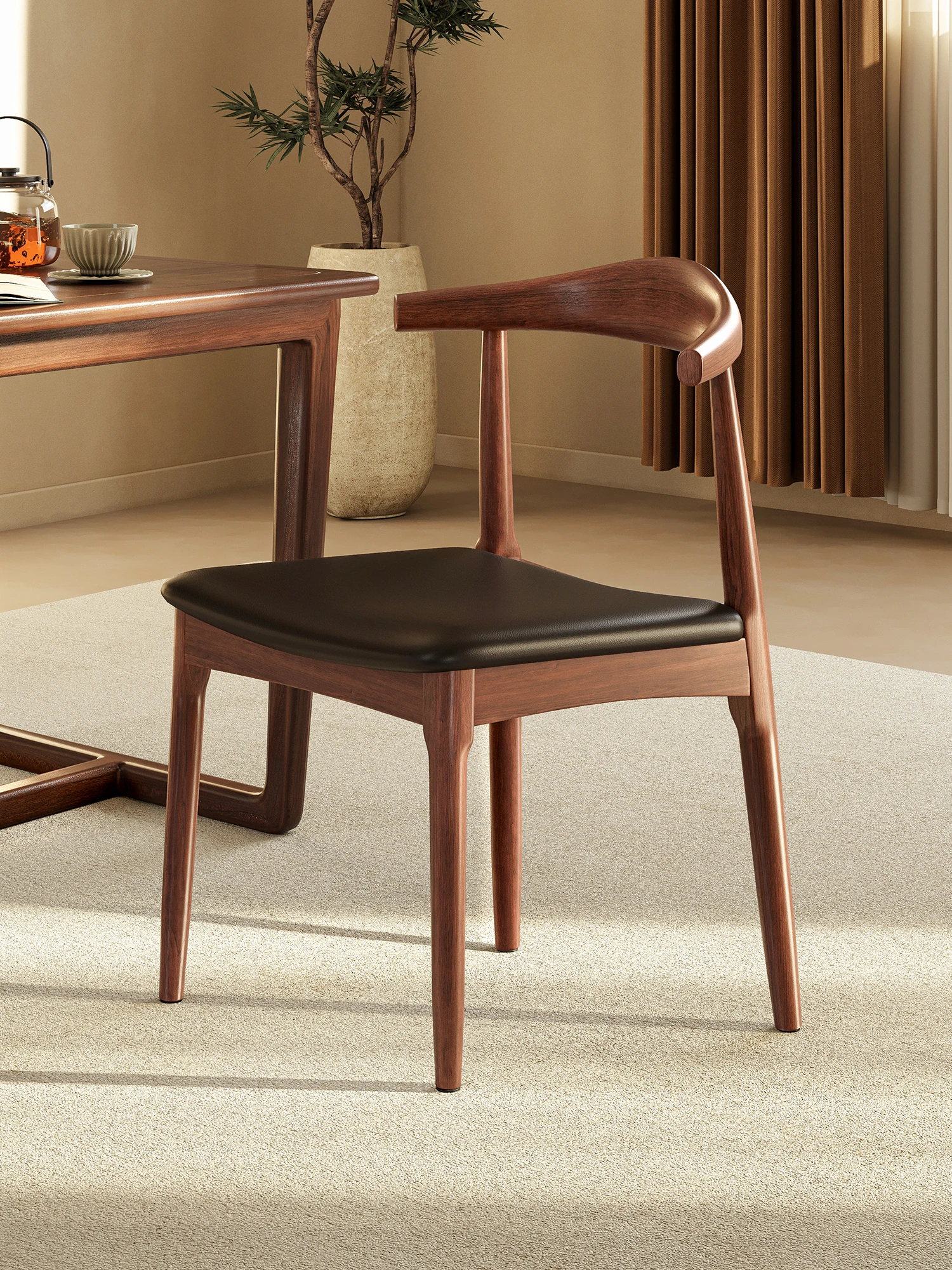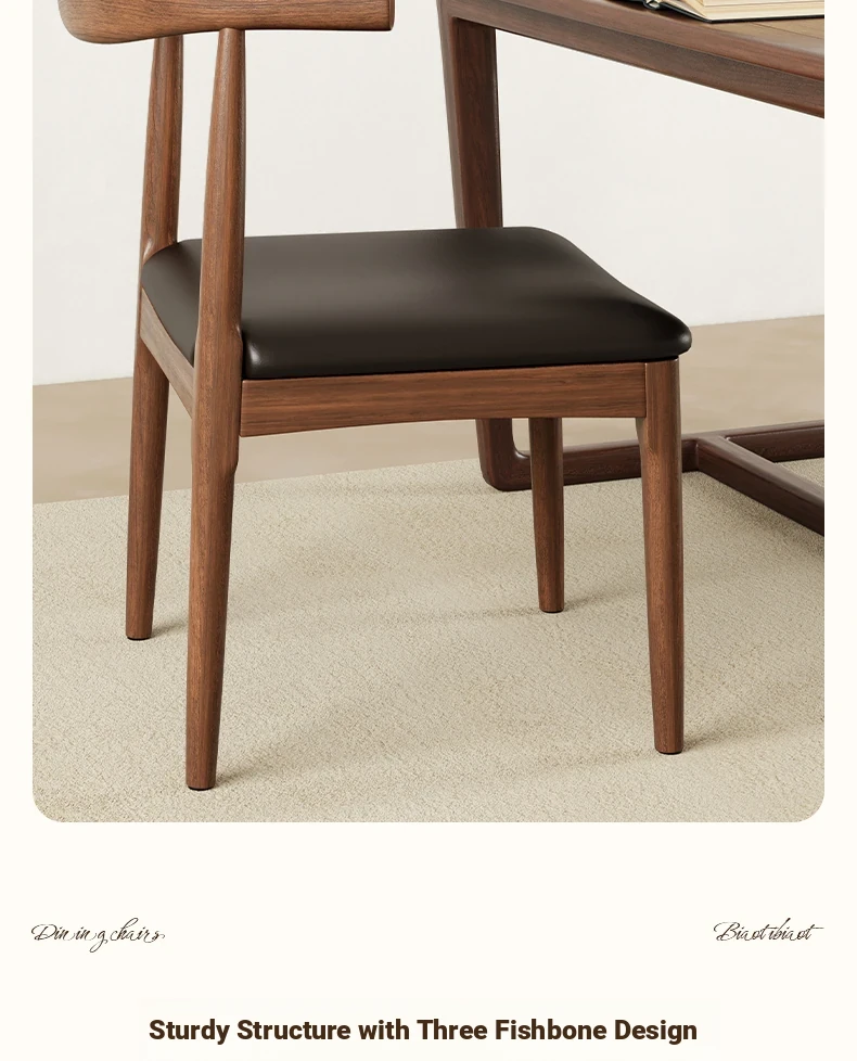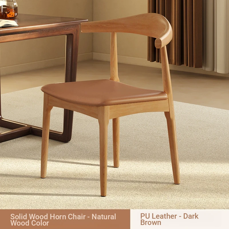 Elegant Solid Wood Dining Chair with Backrest - Ideal for Home and Restaurant Use, Luxurious Horn Chair Design in Premium Walnut Finish, Perfect for New Chinese Style Study or Dining Room.