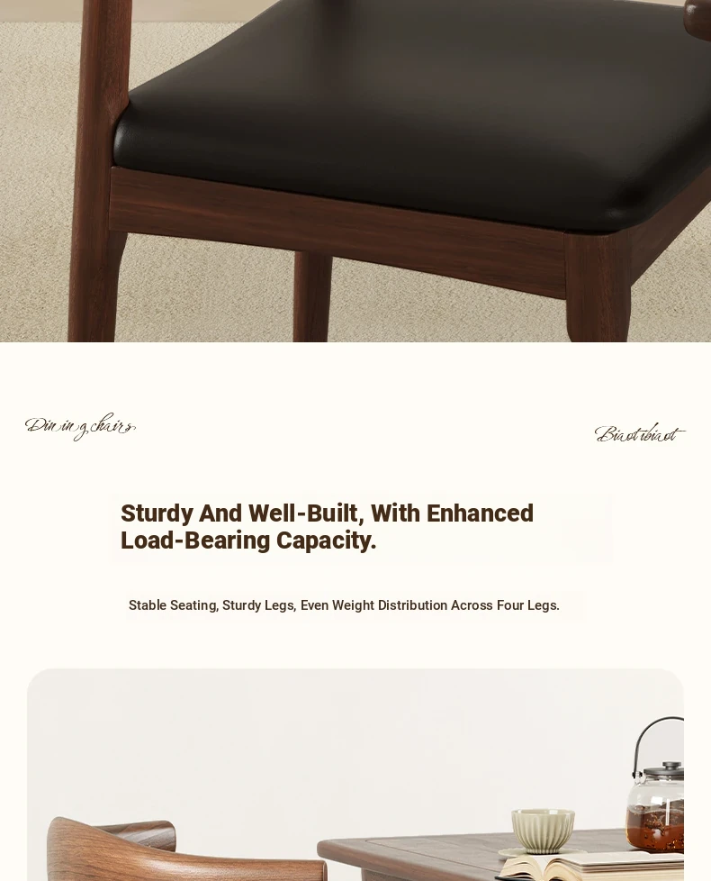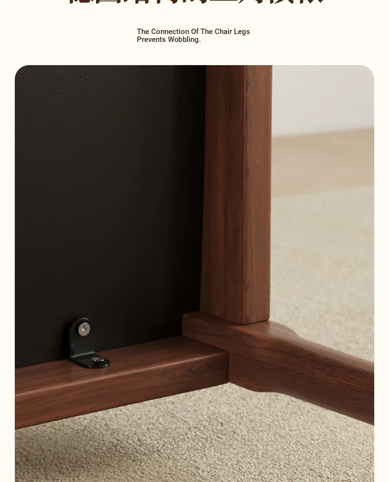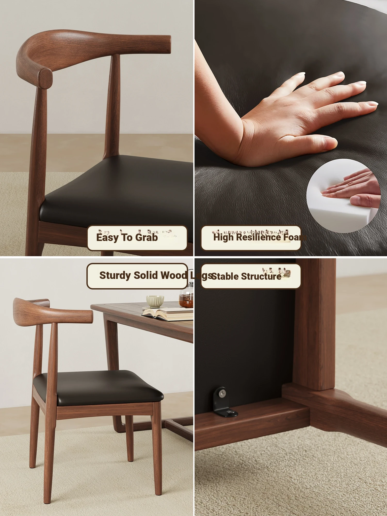 [4 Pack] Walnut + Black★Three-proof PU leather [solid wood horn chair]]