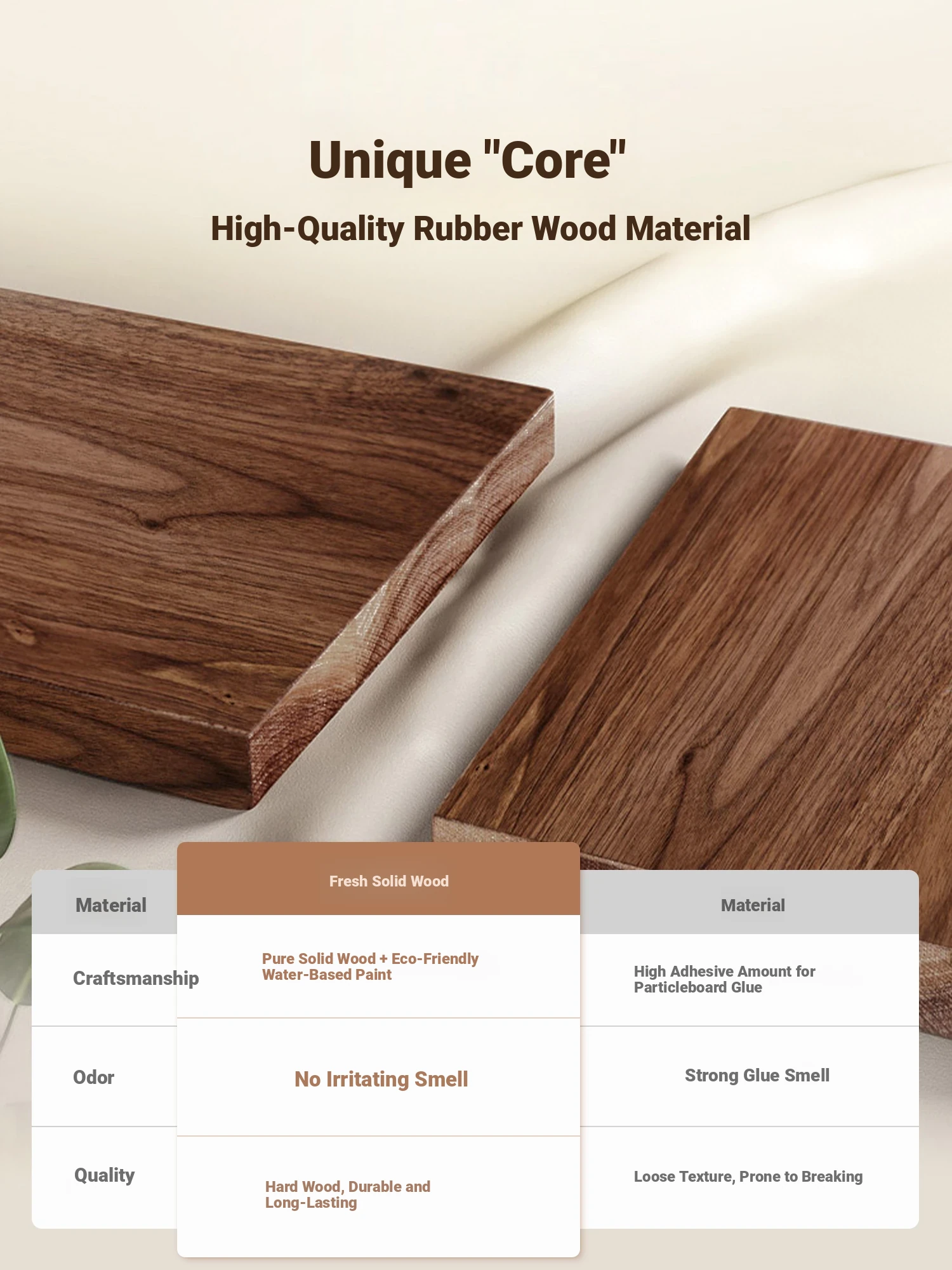 [4 Pack] Log Color + creamy-white★Three-proof PU leather [solid wood horn chair]]