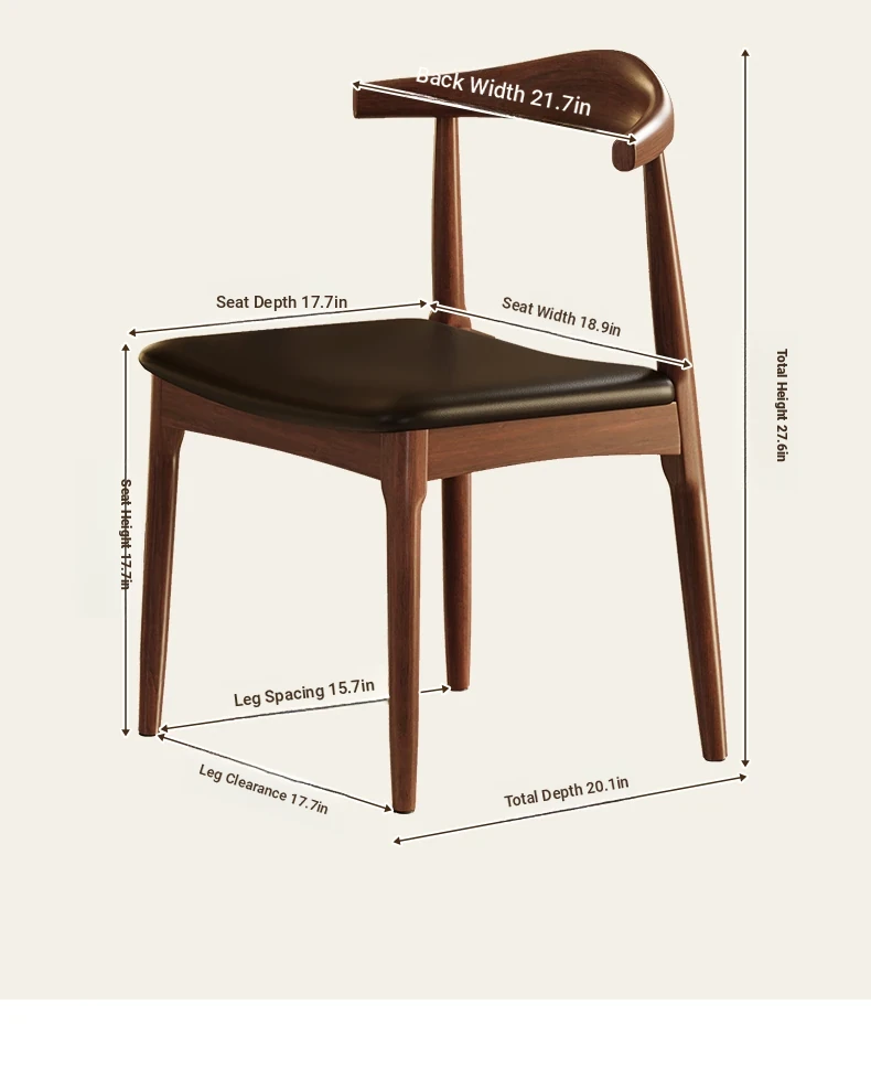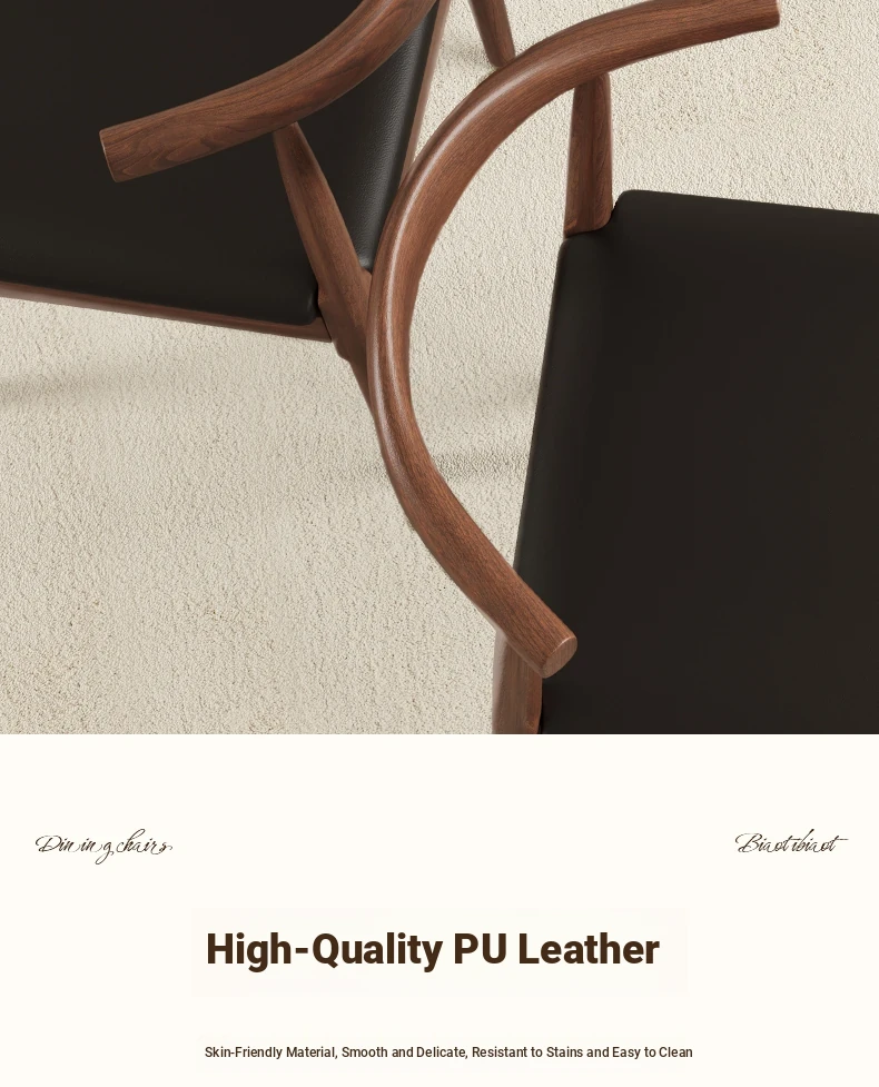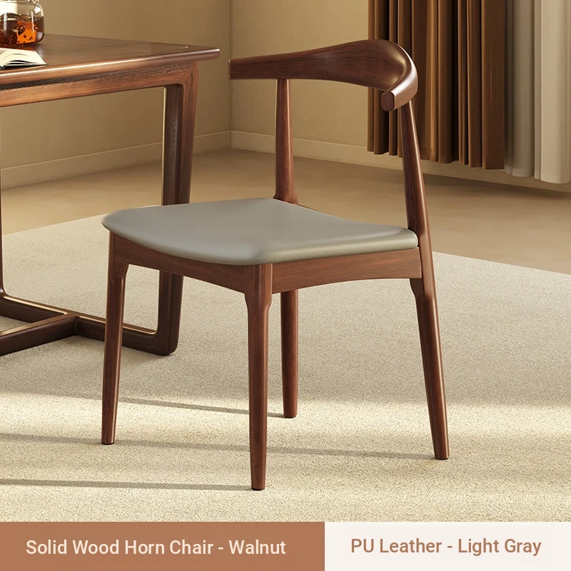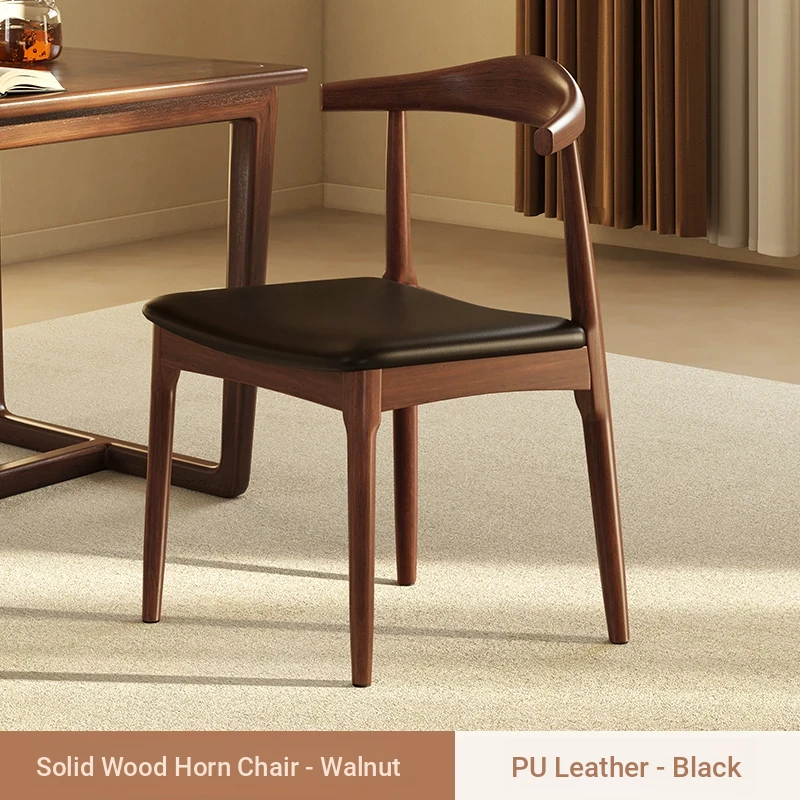 Walnut + Black★Three-proof PU leather [solid wood horn chair]]