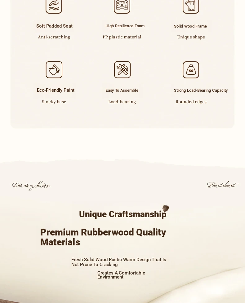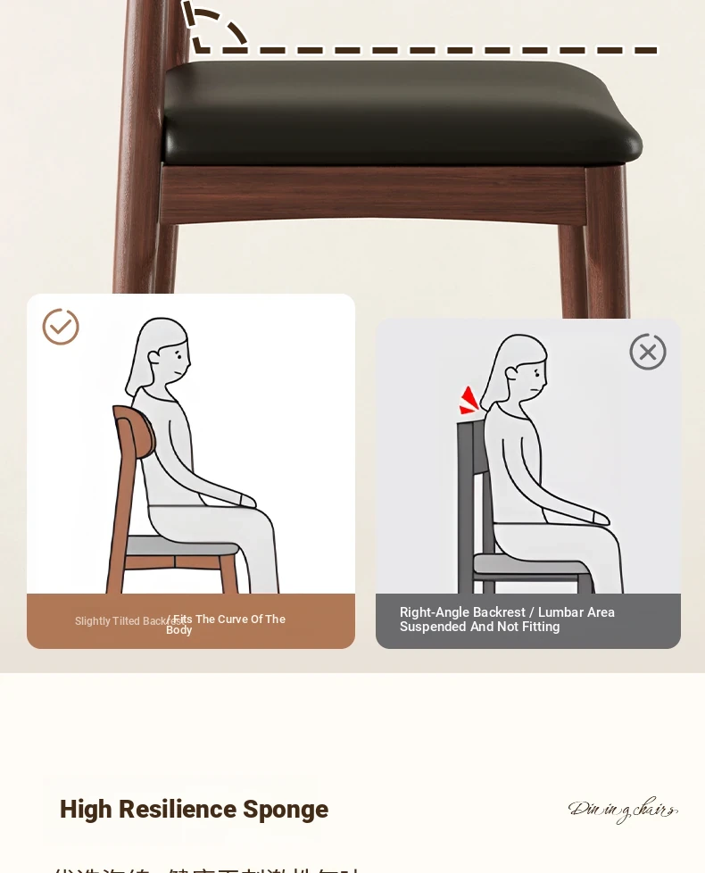 [4 Pack] Log Color + Dark Brown★Three-proof PU leather [solid wood horn chair]]