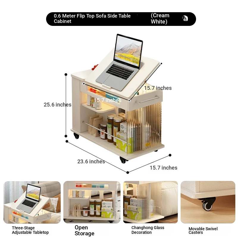 [Cream White] 0.6-meter Movable Flip Adjustable Side