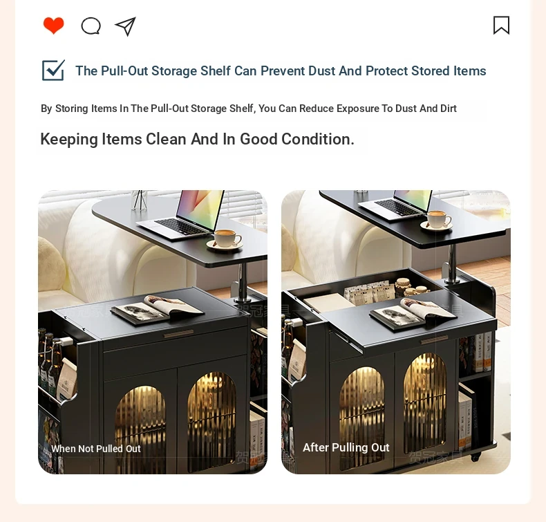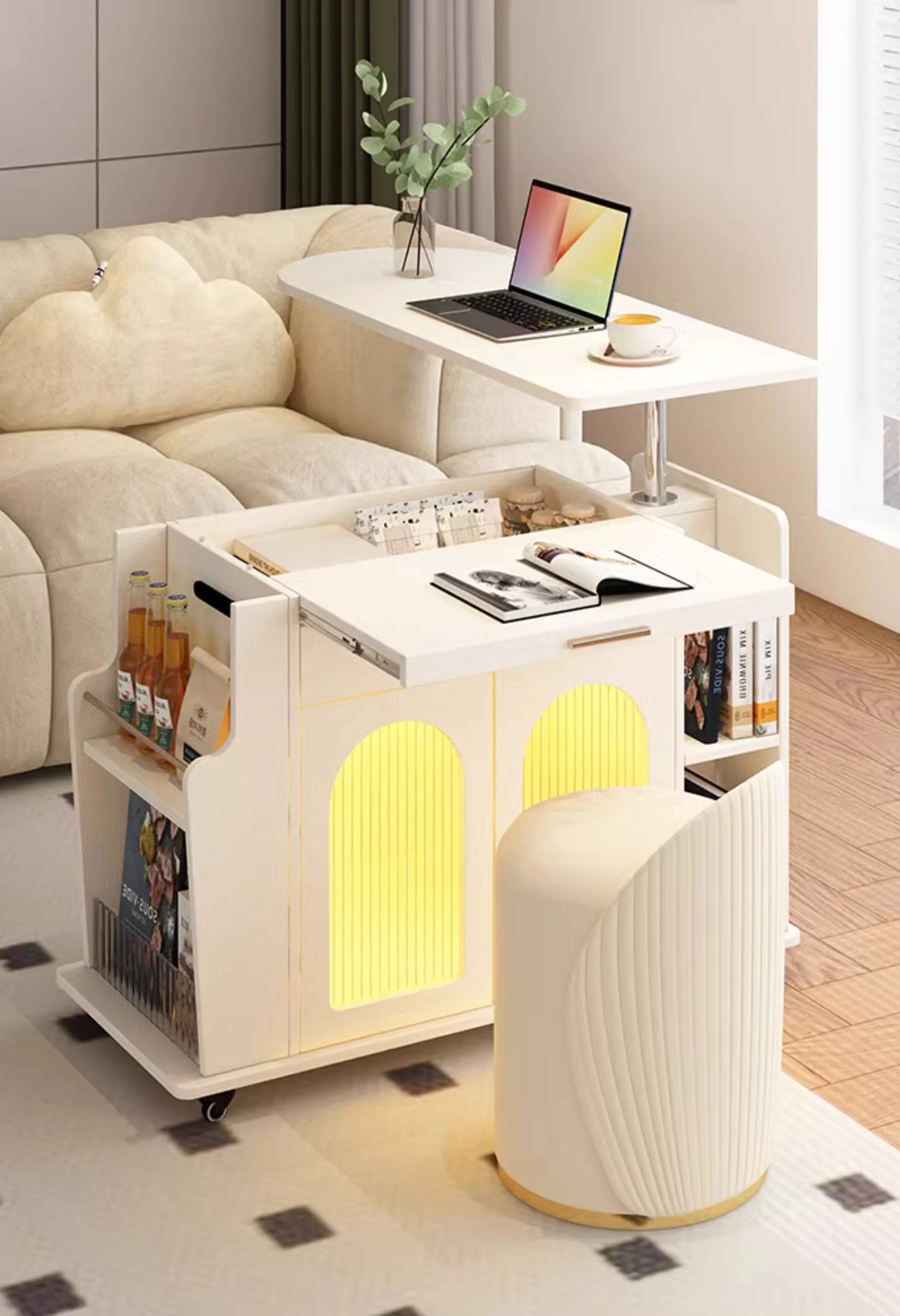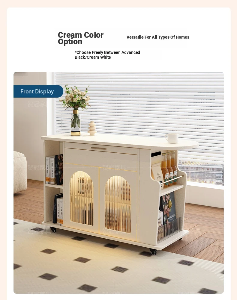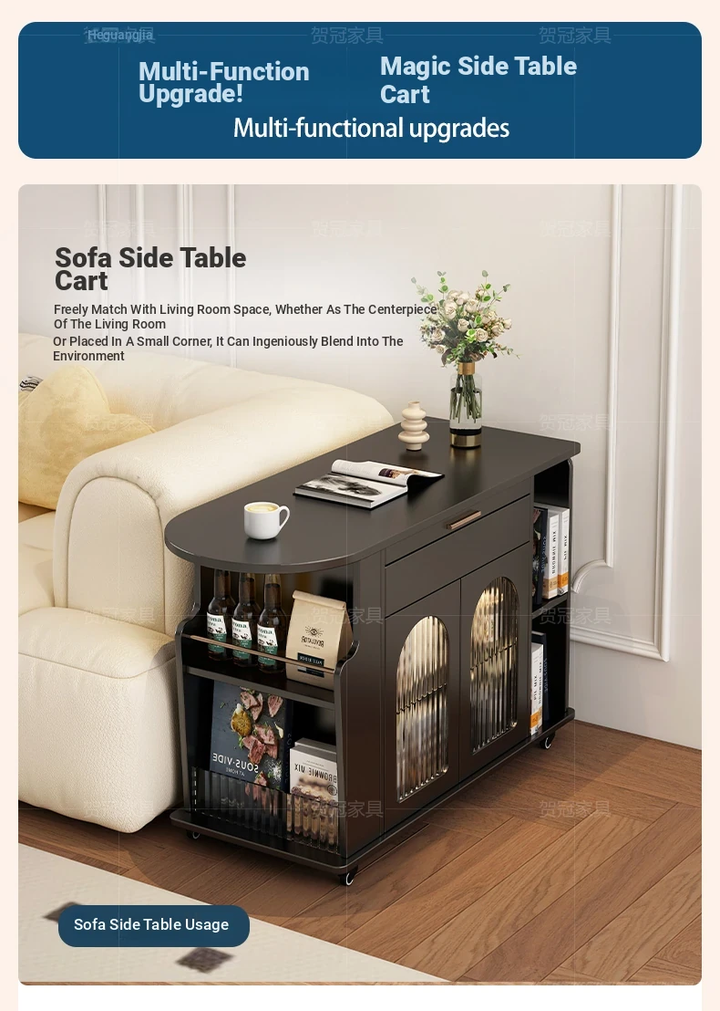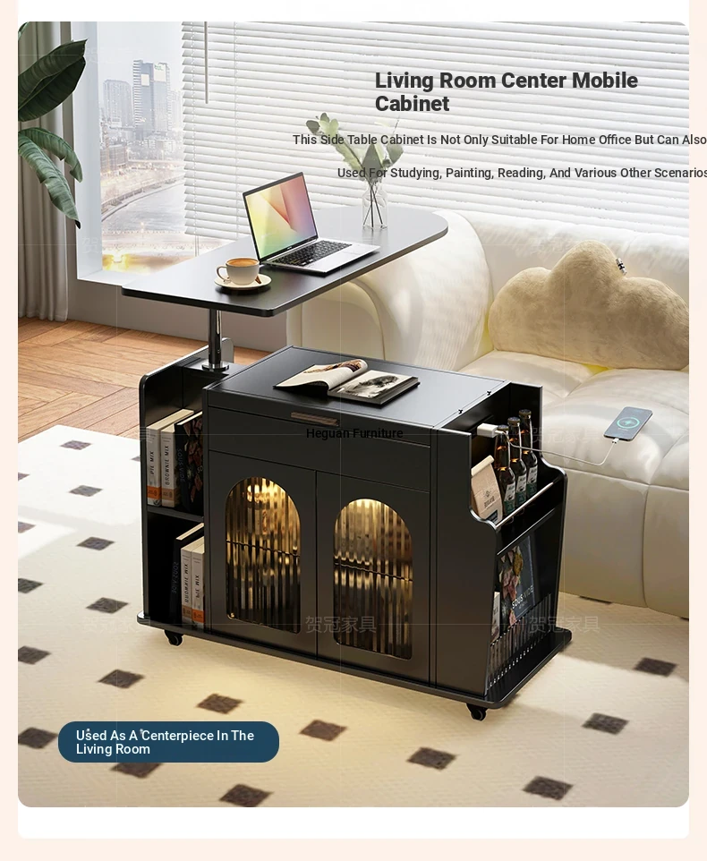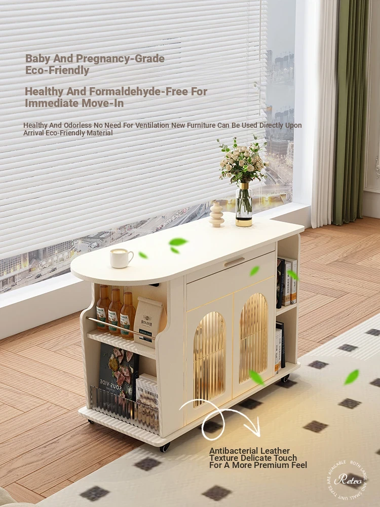 French Cream Style Adjustable Coffee Table: Mobile Tea Trolley End Table for Home, Rotating Sofa Side Cabinet – Perfect for Versatile Living Room Spaces