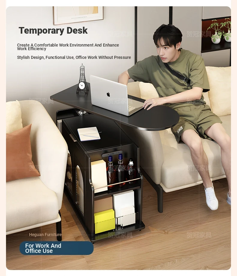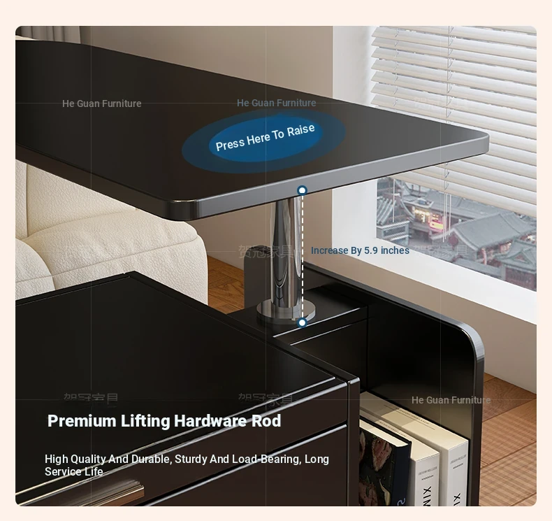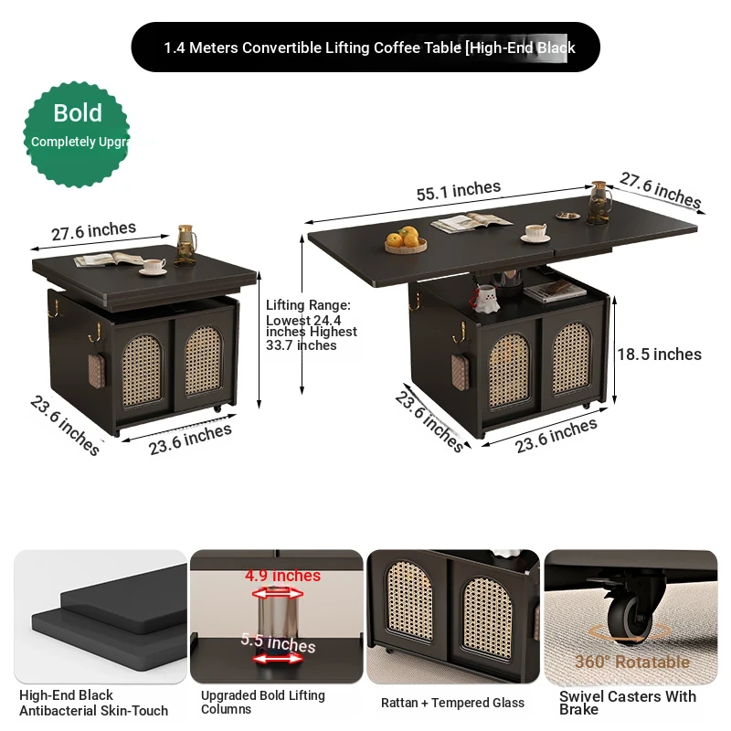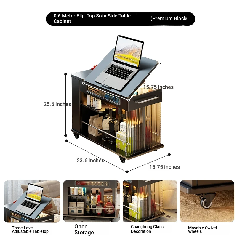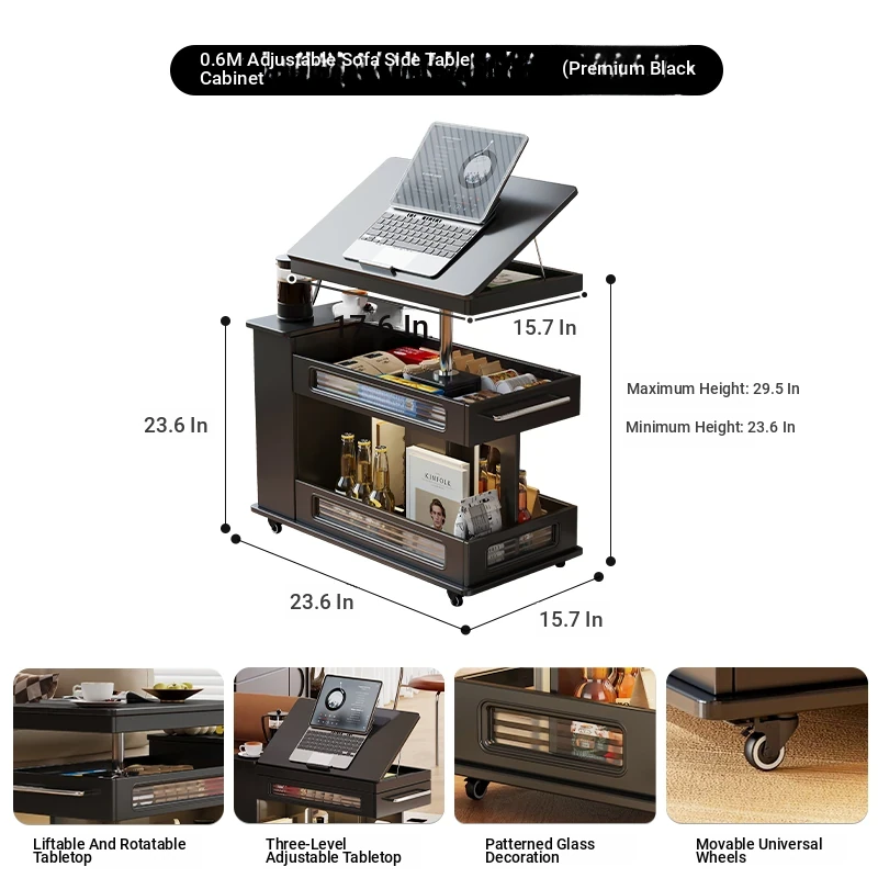 55.12 ins Rotate Adjustable tea table table [Classy Black]]