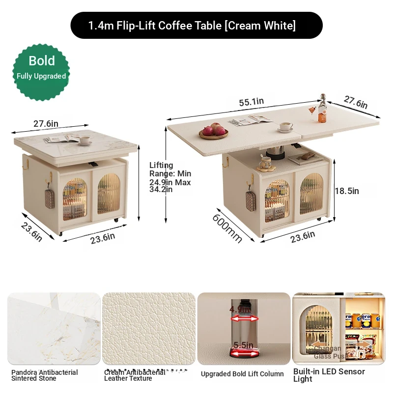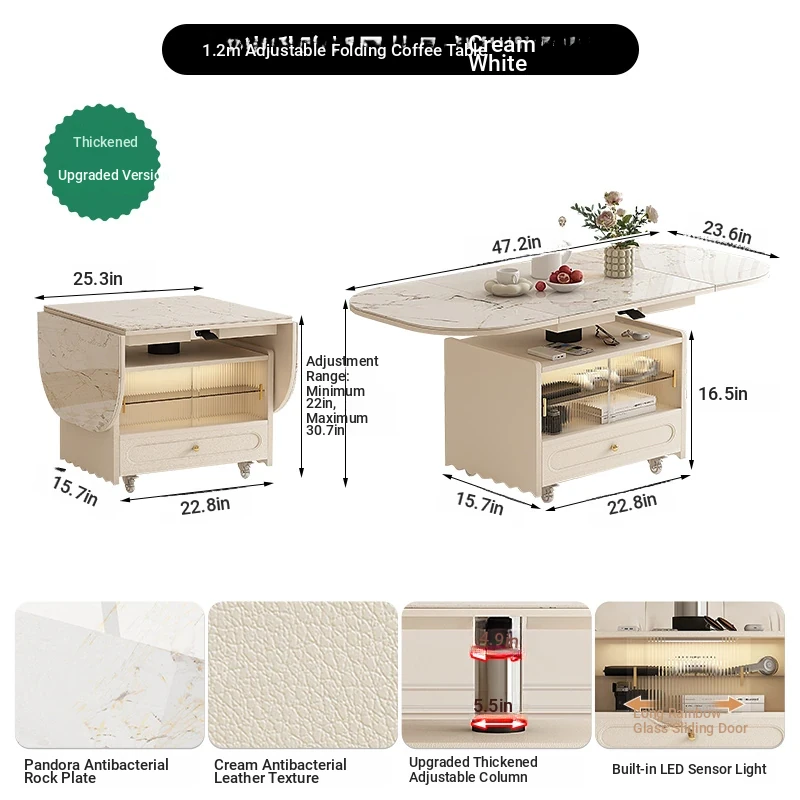 55.12 ins Rotate Adjustable coffee table table [cream]]