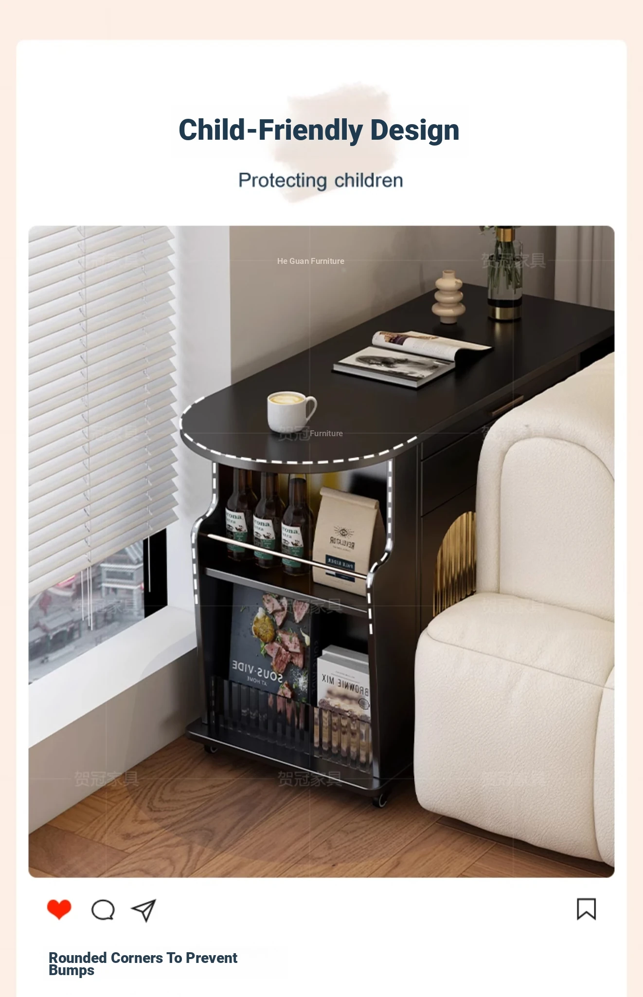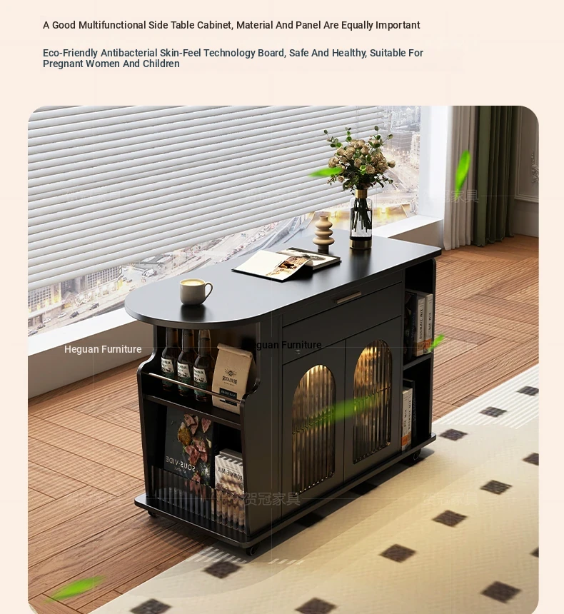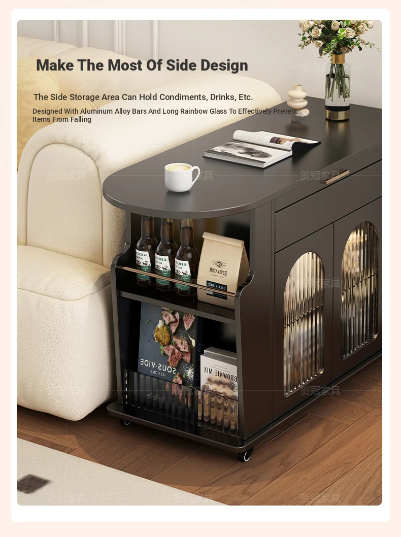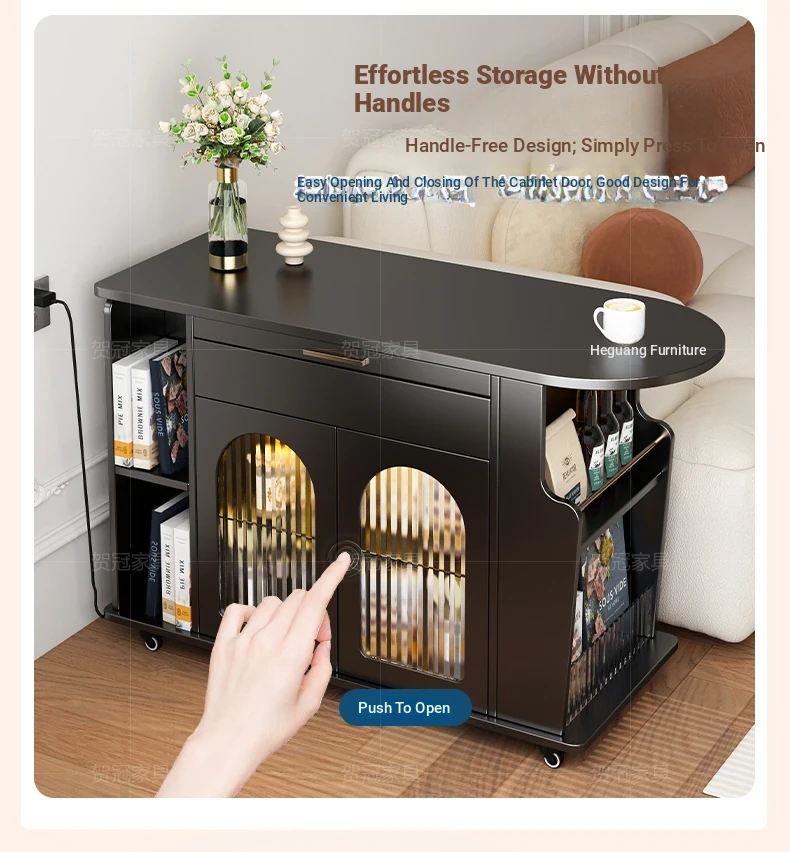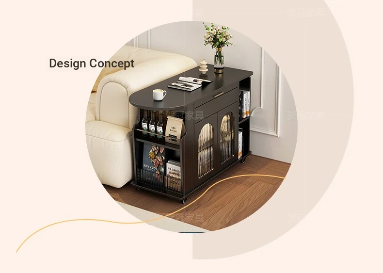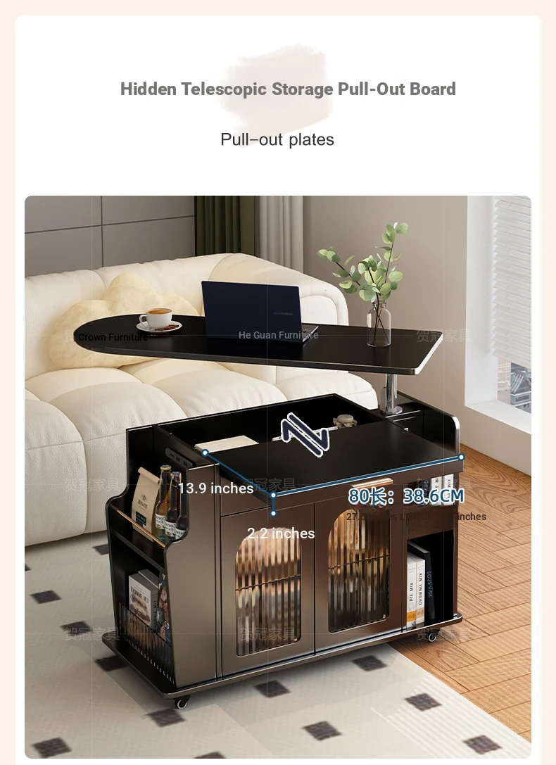 Movable trolley coffee table [solid wood desktop]]
