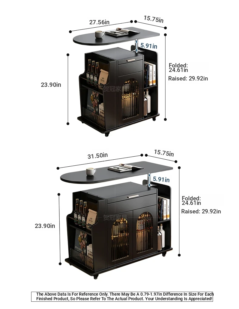 47.24 ins Movable Adjustable Foldable tea table table [Classy Black]]