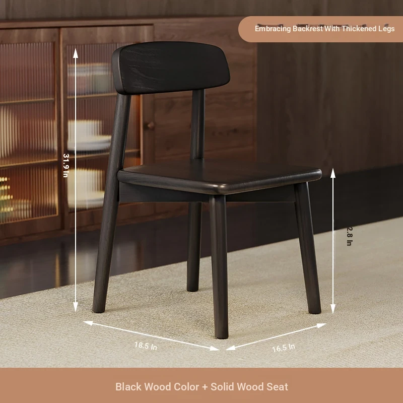 [Embraced Backrest Bold Stool Legs]-Black Wood Color-Solid Wood Stool Surface