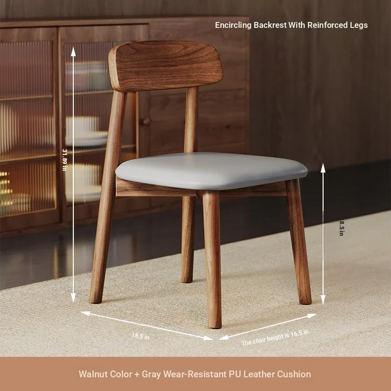 [Embracing Backrest Bold Stool Legs]-Walnut-Grey Abrasion Resistant Pu Leather Cushion