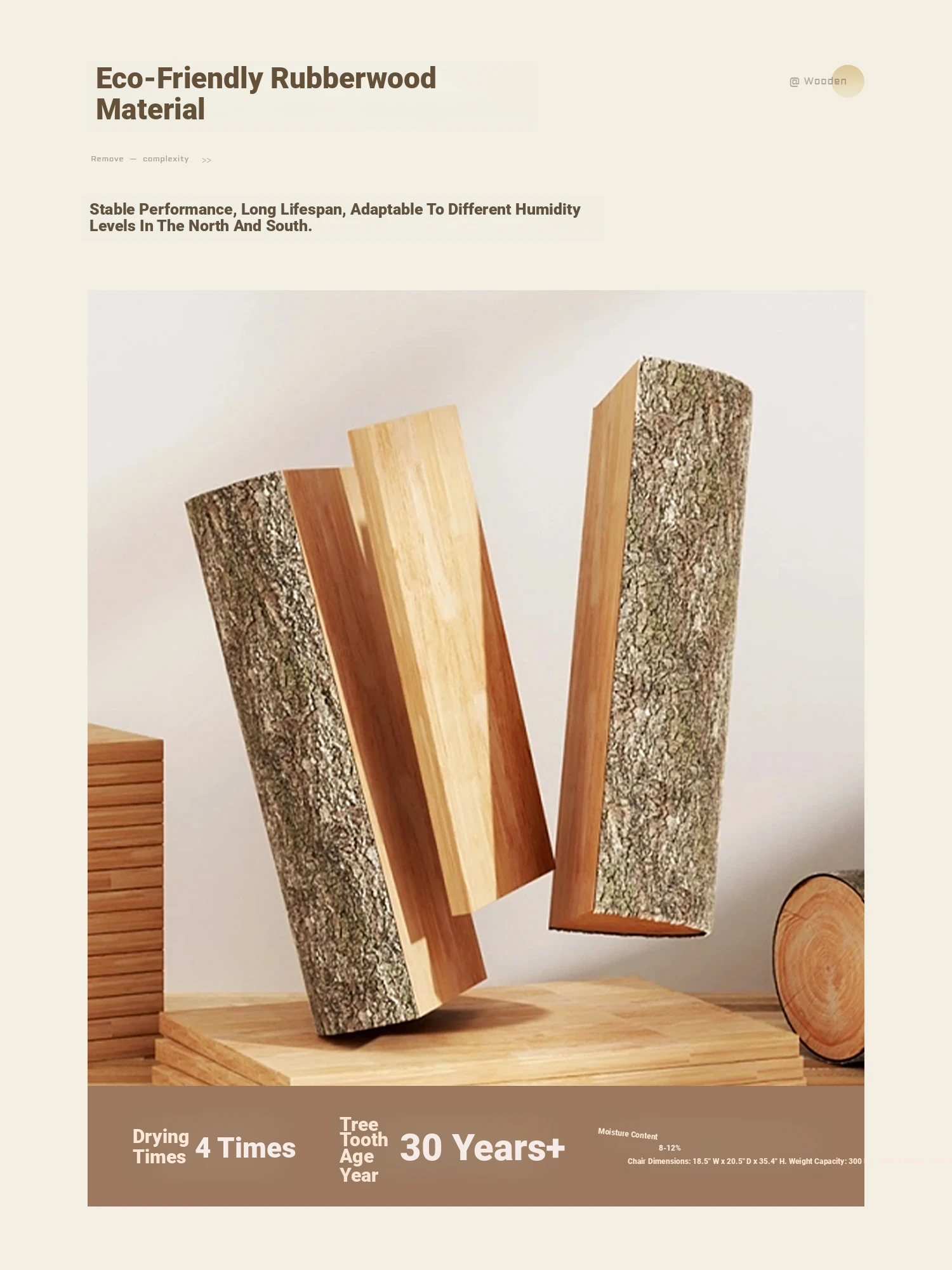 [Embraced Backrest Bold Stool Legs]-Log Color-Solid Wood Stool Surface