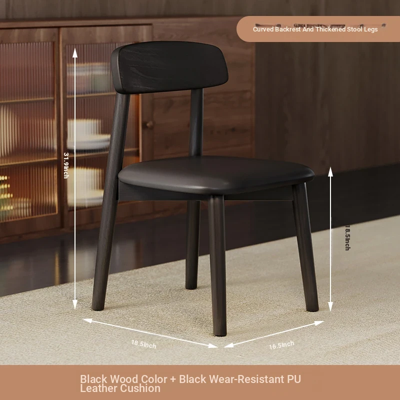 [Embraced Backrest Bold Stool Legs]-Black Wood Color-Black Abrasion Resistant Pu Leather Cushion