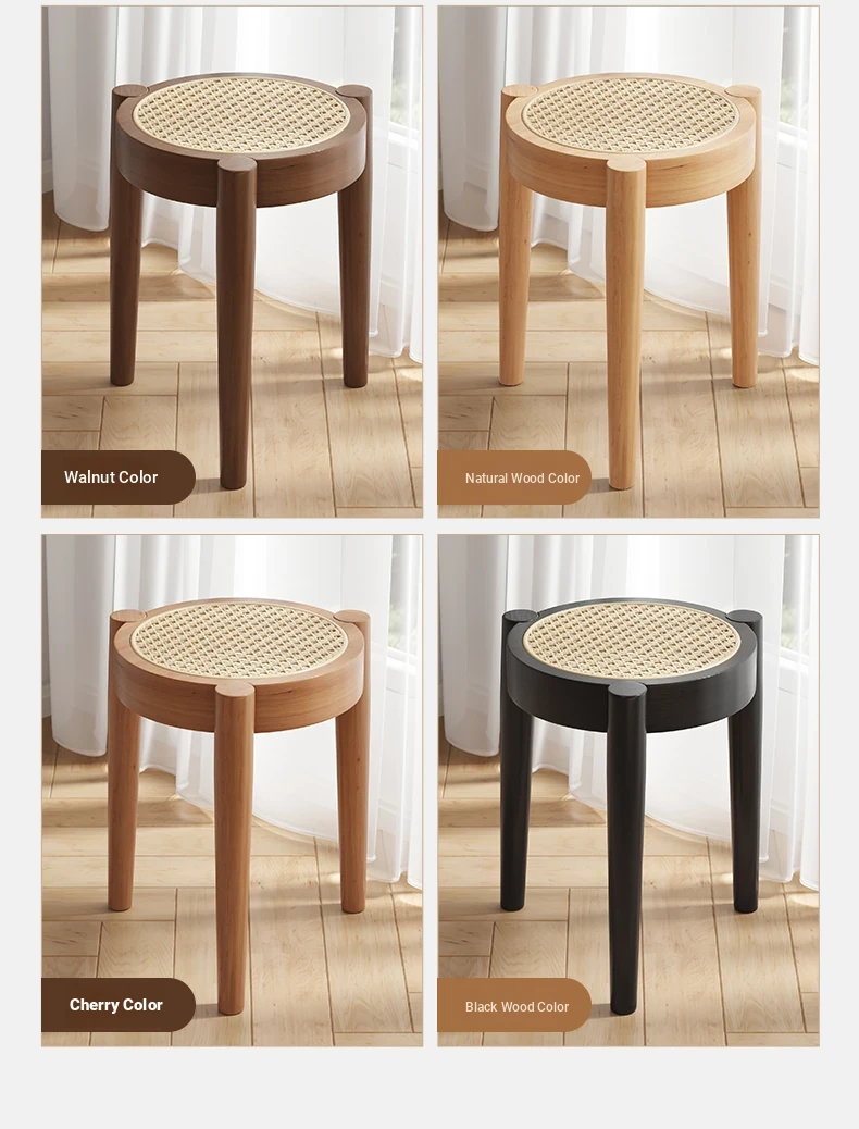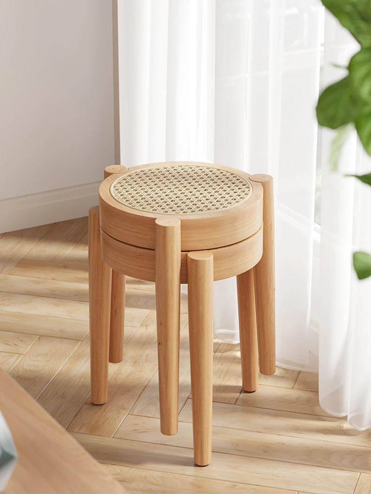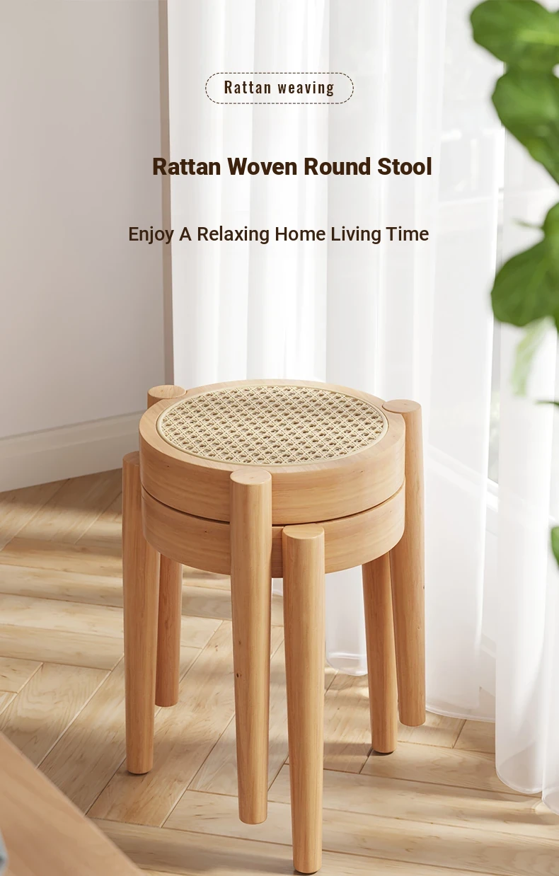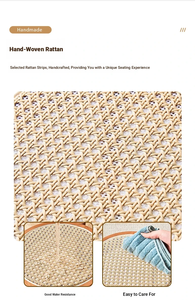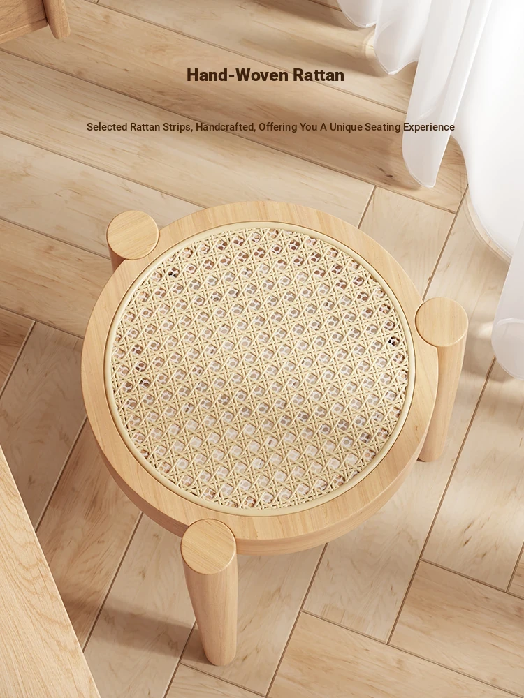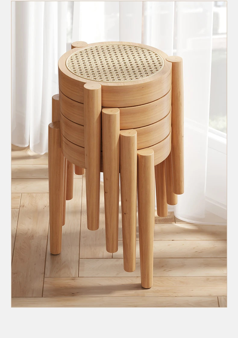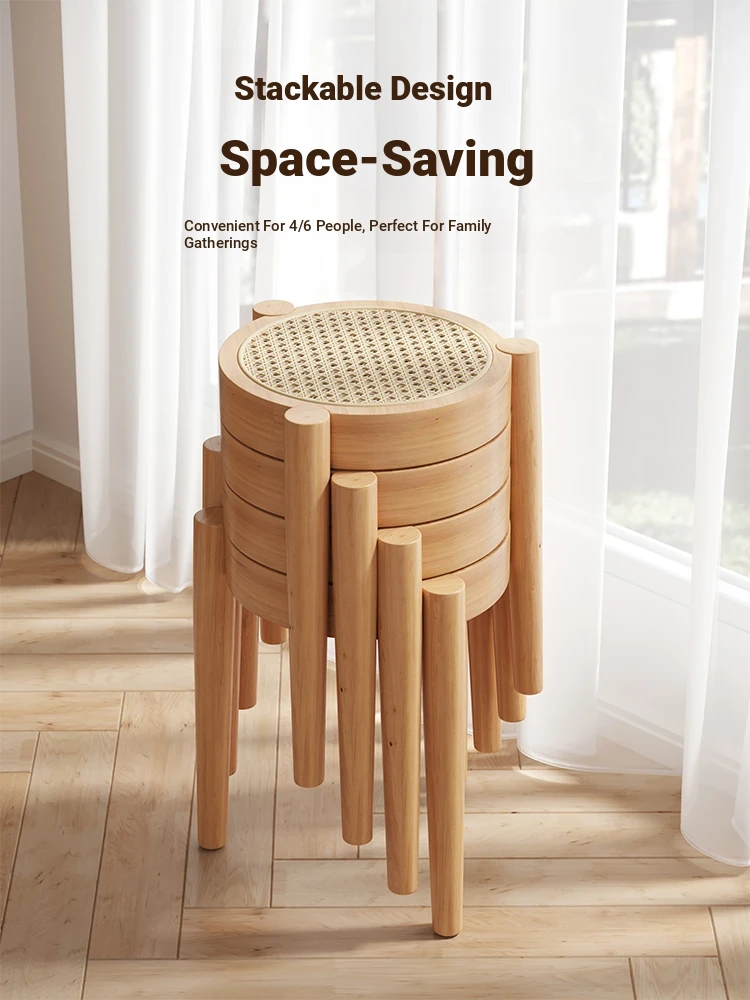高級イタリアンスタイル!実木製ダイニングチェア・リビング用藤編みデザイン、人気の中古風書斎用背もたれ椅子。重ねられる便利さとスタイリッシュさを両立した、居心地の良い丸椅子!